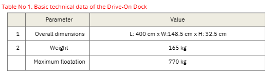 The INRUN PORT has a modular structure, consisting of 3 parts. Its modular design allows for the expansion of the port and parking the scooters one by one. The port is made of polyethylene, a durable, Corrosion-resistant material and mechanical damage. Properly shaped construction and overrun rollers ensure stable scooter backrest. The upper surface of the port is non-slip. The port is designed for two, three and four people water scooters. Has two rollers for the keel, and eight rollers for the bow and a handle for atta-ching the scooter and winch holes. There is a possibility of fixing the port facing or sideways to the pier.